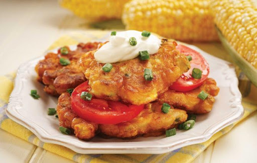 Mix the corn, green onion, flour and baking powder in a medium bowl.