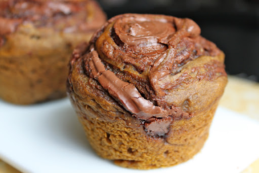 Scoop the batter into the prepared muffin cups evenly (will be about 3/4 full). Scoop a heaping teaspoon of Nutella onto the top of each muffin. Use a toothpick or skewer to swirl the Nutella slightly around the top of the batter.