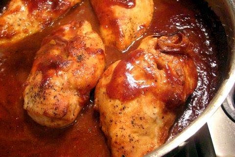 4. Bake chicken with sauce. Off heat, return chicken to skillet, discarding any accumulated juices, and coat chicken well with sauce. Turn chicken smooth side up and spoon extra sauce on top to create a thick coating. Bake until thickest part registers 130 on instant read thermometer. 10 minutes or so. Keep an eye on it.