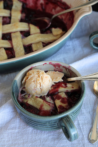 Roll the remaining pastry dough into ¼-inch thickness and cut into 1-inch wide strips. Weave into a lattice over the filling. If desired, brush the pastry with additional half-and-half and sprinkle with sugar.