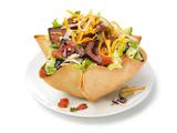 Make the tortilla bowls: Position a rack in the lower third of the oven; preheat to 450 degrees F. Put 4 empty cans (labels removed) or small ovenproof bowls upside down on a baking sheet. Drape a square of foil over each can and coat with cooking spray.