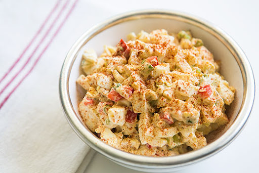 Sigh. So, what does this flood of memories have to do with deviled egg salad? Nothing! Other than it's almost Labor Day, which means all the kids are going back to school if they haven't already. And this egg salad is an excellent dish to bring to a summer or end-of-summer pot luck. Serve it on a few pieces of butter lettuce, or on a bit of bread or toast.