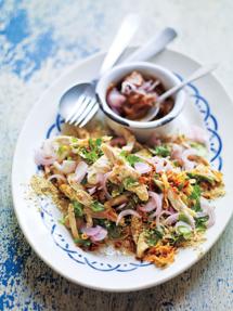 2. In another bowl, whisk the lime juice, salt, chili pepper, and shallot oil. Taste for seasoning and add more salt or lime juice, if you like. Pour over the salad and, using your hands, mix thoroughly. Set aside for 10 minutes.