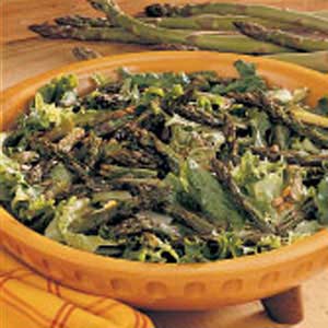 To serve, place the greens in a salad bowl or on individual plates; top with asparagus. Drizzle with dressing and sprinkle with sunflower kernels. Yield: 6 servings.