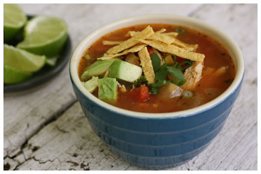 When I made this for my family, I got nothing but “mmmmm”s in return. The chicken broth/tomato base is deliciously seasoned and the soup has a nice amount of chunkiness from the onion, corn, and chicken.