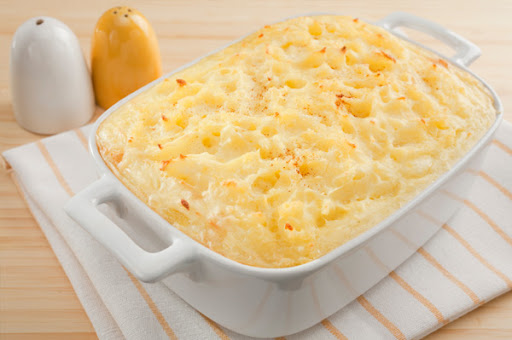 This dish can be served immediately or put into a greased casserole dish and heated later.
