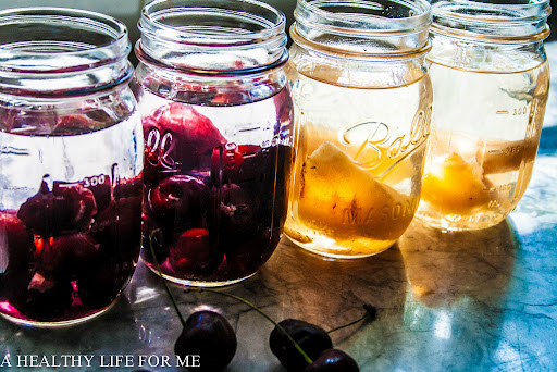 Really any fruit will work. I used cherries and pears but try raspberries, strawberries, pears, figs, lemons, cherries, blueberries, even beets and chiles, as long as they are ripe.