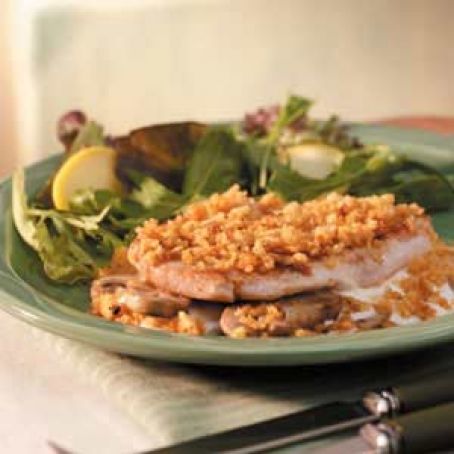 Rich, creamy mushroom stuffing inside moist chops makes this dish special enough to serve company. “