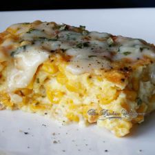 Cover and bake at 350°F for 25 minutes. Sprinkle with stuffing. Bake 10 minutes longer or until a meat thermometer reads 160°F. Yield: 2 servings.