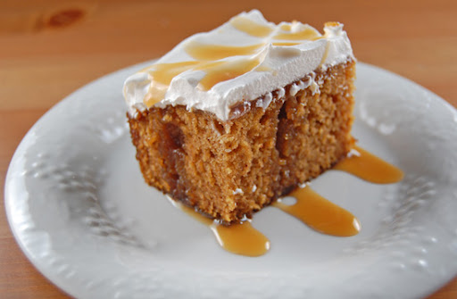 The caramel soaks into the cake, infusing one perfect fall flavor with another. Amazing!