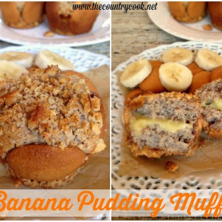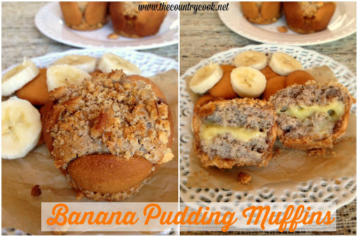For muffins: Combine muffin mix, bananas and milk. Fill muffin cups about 1/2 full. Spoon a little less than 1 tablespoon pudding on top. Spoon remaining batter on top of pudding. Top with remaining crumbs.