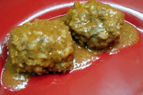 *Shape mixture into 12 meatballs and place in a large greased skillet. I used my electric skillet and gave it a quick shot of cooking spray.