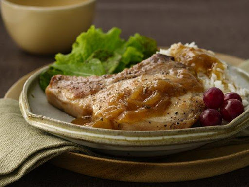 2 Meanwhile, in 10-inch skillet, heat oil over medium-high heat until hot. Cook garlic and pork chops in oil 4 to 5 minutes on each side or until pork chops are brown. Sprinkle with salt and pepper.