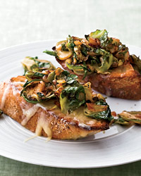 Brussels Sprouts and Smoky Onions on Cheddar Toast