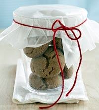 3. Bake in 375 degree F oven about 10 minutes or until edges are set and tops are slightly cracked. Cool on wire rack. Package 6 cookies in a small glass tumbler; seal with waxed paper; tie with string. Makes about 48 cookies.