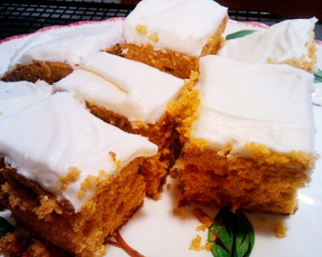These decadent bars are moist, delicious and topped off with heavenly, creamy, velvety, whipped maple cream cheese frosting.