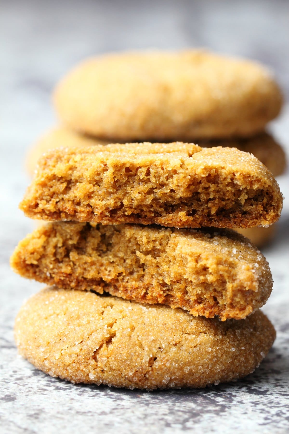 Vegan molasses cookies that are wonderfully soft and chewy, deliciously spiced with perfect molasses flavor. Super easy recipe and an ideal holiday cookie!