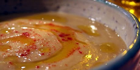 3. Pluck out the herbs. Blend the chickpeas until smooth. Strain (or put through a food mill) into a saucepan. Reheat, taste, and adjust the seasonings. Ladle into bowls and garnish with a dribble of olive oil.