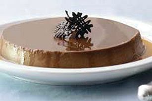MELT remaining 2 chocolate squares in small microwaveable bowl on HIGH 1 min. or until chocolate is melted, stirring after 30 sec. Use teaspoon to drizzle chocolate in 5 or 6 random crisscross designs onto a sheet of wax paper; let stand until firm. Carefully remove chocolate designs from wax paper and place on top of flan to decorate.