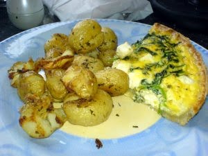 Every couple of weeks I get a craving for quiche. Tonight I decided to use up the feta & eggs in the fridge so made a watercress, feta & pesto quiche, crushed new potatoes with (local) asparagus. I’ve never had watercress before, but really liked it. With a quiche you can essentially use any “filling” ingredients you want. When we’re feeling unhealthy I make it with mushrooms, cheese, bacon and single cream or tomato sauce and sausages.