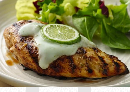 In small bowl, mix yogurt and lime peel. Serve chicken topped with yogurt mixture and lime slices.