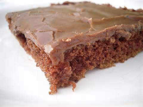 5)Add the buttermilk mixture to the chocolate/flour mixture and stir together well. Pour into Jelly roll pan and bake at 350 for 20min.