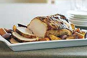 ADD onions and carrots to ingredients in pan. Bake 1-1/2 hours or until pork is cooked through (160°F), basting occasionally with the pan juices. Let stand 10 min. before cutting pork into slices. Serve with the vegetables.
