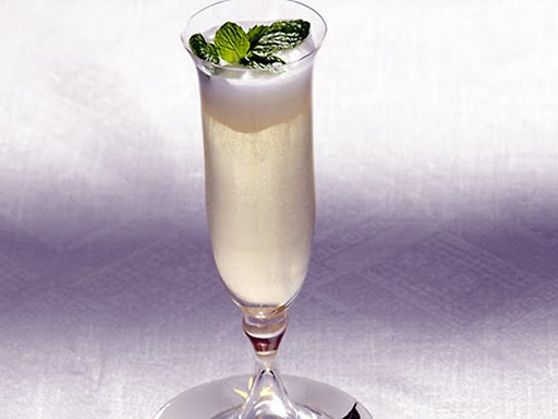 Pour the Prosecco and vodka into 2 Champagne flutes, diving equally. Spoon a scoop of sorbet into each flute. Sprinkle with mint and serve immediately