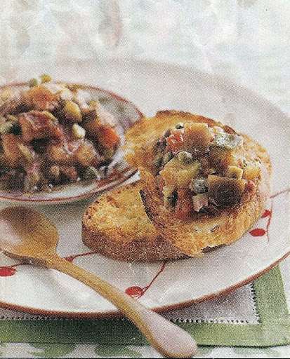Stir in olives and capers. Serve warm, at room temperature, or chill overnight. Spoon about 1/4 cup onto each toasted bread slice.