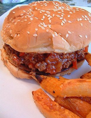 In a medium skillet over medium heat, brown the ground beef, onion, and green pepper; drain off liquids.