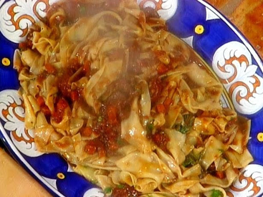 5. Drop the pasta into boiling water and cook until tender yet still firm, about 2 minutes. Drain the pasta and add to the ragu. Add parsley and toss gently to coat, pour into a warm serving dish. garnish with rosemary and a drizzle of oil, and serve immediately.