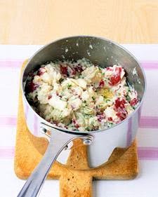 In a medium saucepan, cover potatoes with salted water; bring to a boil. Reduce heat; simmer until fork-tender, 10 to 15 minutes. Drain, and return to pot.