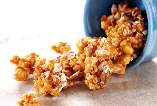 Pop the popcorn in an air popper or the conventional stove-top way (some may refer to this as the “old-fashioned” way. The un-popped kernels should yield about 6 to 8 quarts (24 to 32 cups) of popped corn. Transfer the popcorn to 2 large roasting pans.
