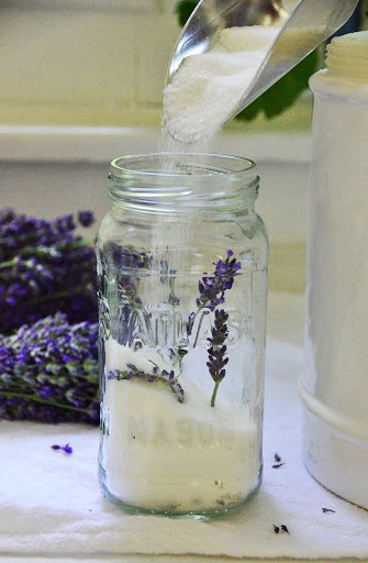 Shake the jar up now and then to distribute the lavender oils in the sugar.