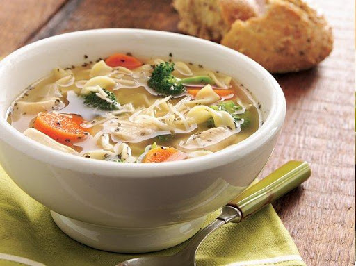 Stir in broth, water and carrots. Heat to boiling. Cook 5 minutes over medium heat. Stir in broccoli, noodles, basil and garlic-pepper blend. Heat to boiling; reduce heat. Simmer uncovered 8 to 10 minutes, stirring occasionally, until vegetables and noodles are tender.