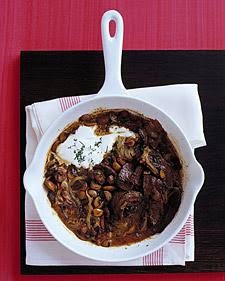 Stir in the sour cream just before serving this hearty Russian dish. We chose tenderloin, but you can substitute trimmed rib-eye, which is less expensive.