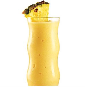 4. Combine pineapple, ice cubes, rum, juice, and agave nectar in a blender; process mixture until smooth. Add milk mixture, and process until smooth. Serve with pineapple slices.