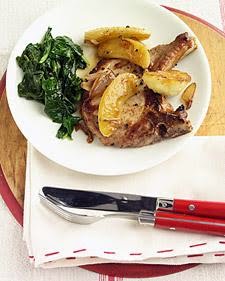 While apples are cooking, season pork chops generously with salt and pepper; place on a rimmed baking sheet. Broil until cooked through, 3 to 5 minutes per side. To serve, spoon warm apple mixture over chops.
