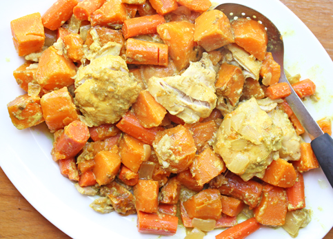Serve Slow Cooker Sweet Potato and Chicken Curry.