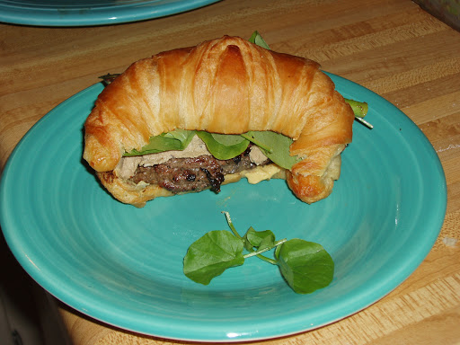 Towards the end of cooking, place the croissants on the grill to toast a bit too.
