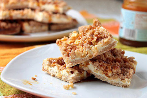 Remove from the oven and allow to cool completely in the pan. Drizzle on the caramel and set in the fridge for 1-8 hours.