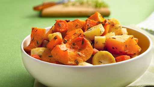 Bake 35 to 40 minutes longer, turning vegetables twice with pancake turner, until vegetables are tender. Spoon into serving bowl or on platter; garnish with thyme sprigs.