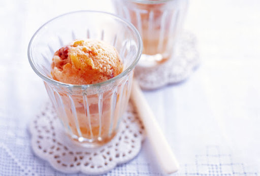 5. Toward the end of the freezing process, fold in the reserved peaches and the hazelnuts. Enjoy immediately or transfer to a container and freeze a little longer if you’re the sort who likes a slightly firmer texture. Regardless, you may wish to remove the ice cream from the freezer about 10 or so minutes prior to serving to soften it slightly.