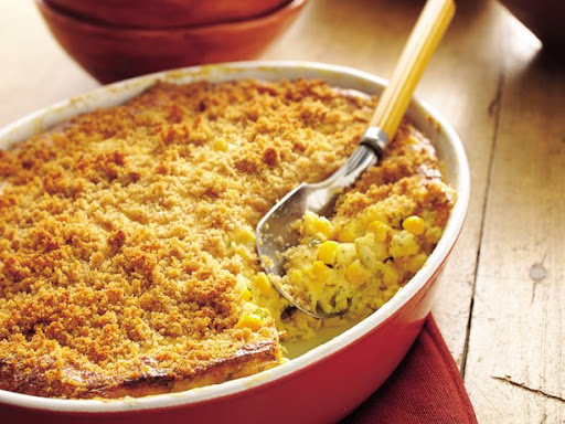 In small bowl, mix bread crumbs and 3 tablespoons melted butter; sprinkle over corn mixture.