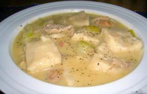 Remove lid on pot and add several squares at a time to the boiling broth replacing lid each time for about 30 seconds until you have added all the dumplings. Once all the dumplings are added lower heat to simmer for about minutes. Add salt and pepper to taste. Enjoy.