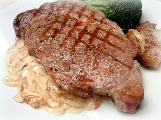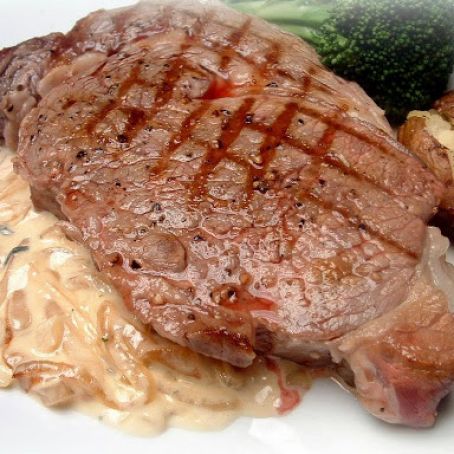 Grilled Ribeye Steak with Onion Blue Cheese Sauce from The Pioneer Woman Cooks