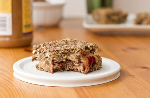 Nutritional Info: (per square, makes 9 squares): 228 kcals, 9 grams fat, 110 mg sodium, 33 grams carbs, 7 grams fibre, 13 grams sugar, 6 grams protein.