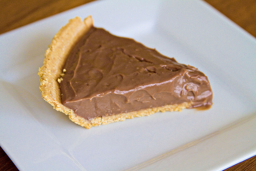 Pour the filling into the crust, and then place plastic wrap directly on the surface of the chocolate. Chill at least 4 hours before serving.
