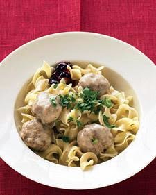 In a small bowl, soak the bread in the milk until soft. In a large bowl, combine all the meatball ingredients except the butter and oil and then add the soaked bread. Mix thoroughly until smooth. Shape into small golfball sized meatballs (by dipping hands into cold water so the meat won't stick to your hands).