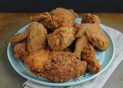 7. Fry four pieces at a time on each side starting with dark meat since it takes longer. Make sure you don’t overcrowd the pan. After each side has turned slightly golden, put the top on the skillet to steam the inside of the chicken ensuring doneness. After a couple of minutes, remove the top and continue to fry until the crust is crispy again and completely golden brown.